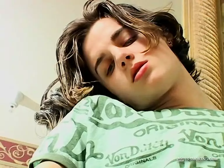 Skinny Ayden James smokes while stroking his own cock