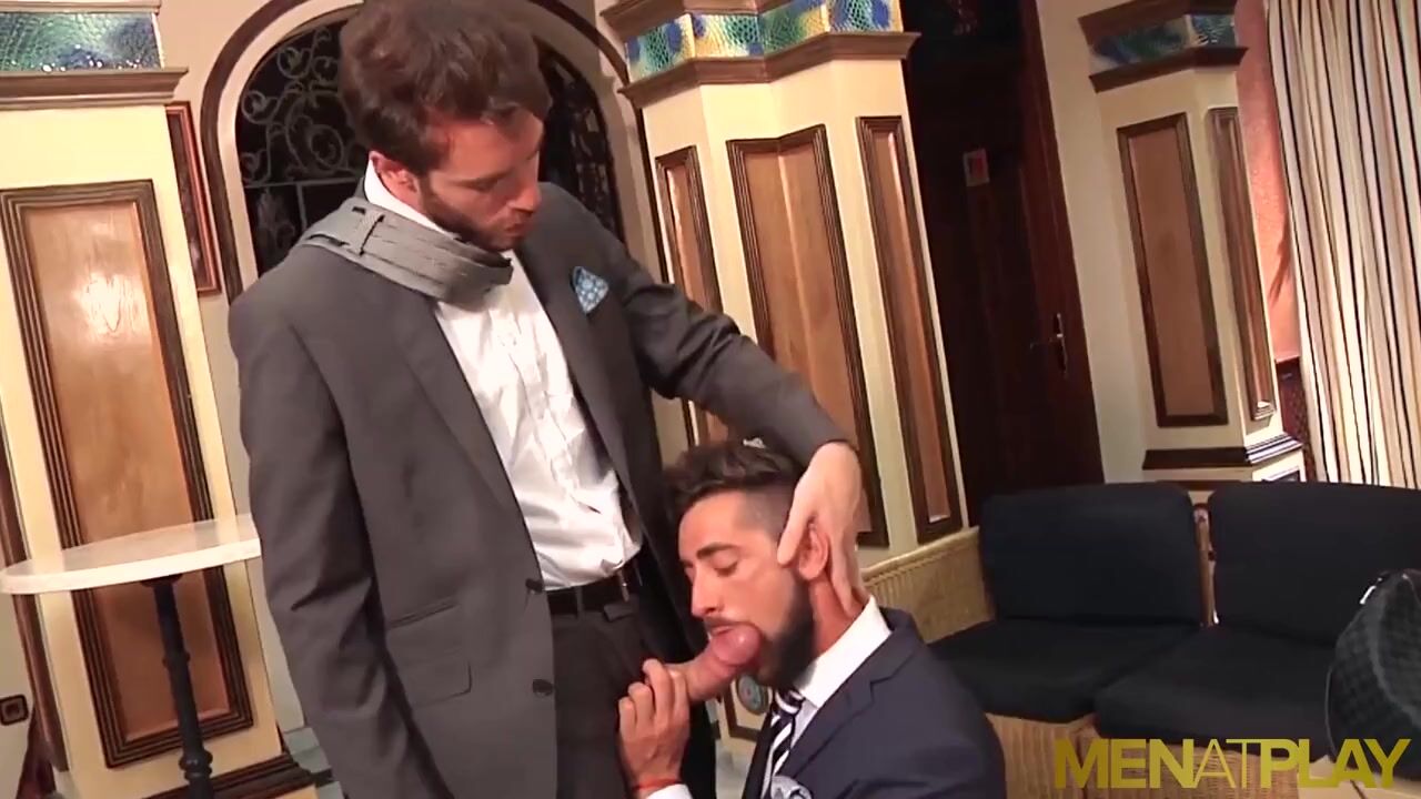 Young and classy businessman Philip Zyos takes his huge dick and butt fucks submissive hunk Massimo Piano at the conference!