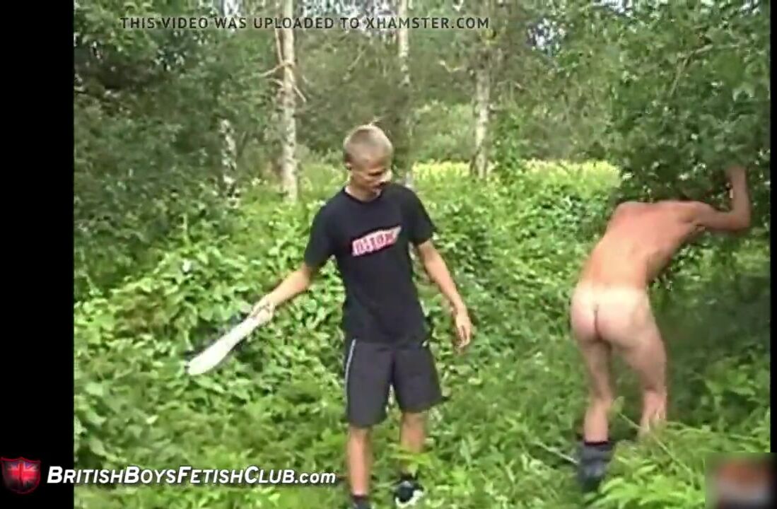 Keith strips off and Tommy takes the belt to his cute butt. One boy is leaning forward bare-assed while the other one trashes him with the belt.