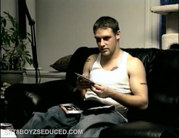 Vinnie and straight boy Buzz head to the bedroom where Buzz strips down and gives all of his attention to the porn video playing. When Vinnie moves in and starts sucking his dick, he responds quickly and gets hard. Soon he's on his knees waiting for Vinnie to fuck his tight ass. Buzz rides Vinnie's bare cock as he mimics the actions in the flick and in no time he makes Vinnie bust his nut on his butt. Vinnie starts blowing Buzz again and he explodes in his mouth.