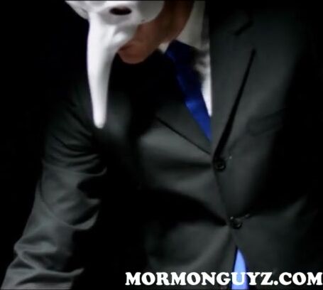 Young Latino Mormon guy with big muscles is called into a dark room and a masked man gets his huge cock out and masturbates.