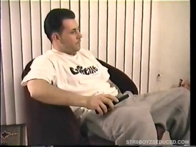 Straight boy Dylan had a hard-on even before he arrived. He asks Vinnie to turn up the TV volume so he can hear the bitches scream and Vinnie starts sucking and stroking and licking his shaft. This ti