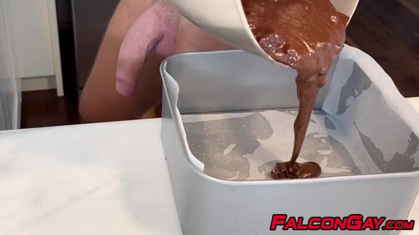 Solo athletic stud Josh Moore masturbates in the kitchen before making his favorite cake.