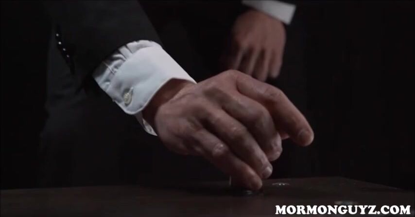 Mormon twink is called into dark room where he is told to sit and ride a dildo in front of church president then fucked in front of elder bishop.