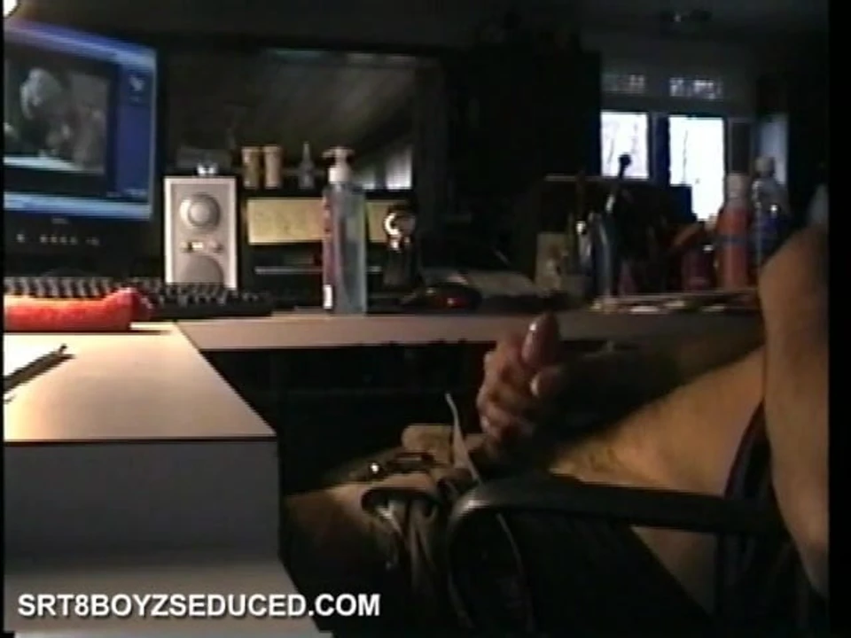 While seated at the computer, Vinnie's straight roommate Zack finds a porn movie and gets right into stroking his lubed up cock. He wants to finish quickly, but Vinnie tells him to hold off for a bit.