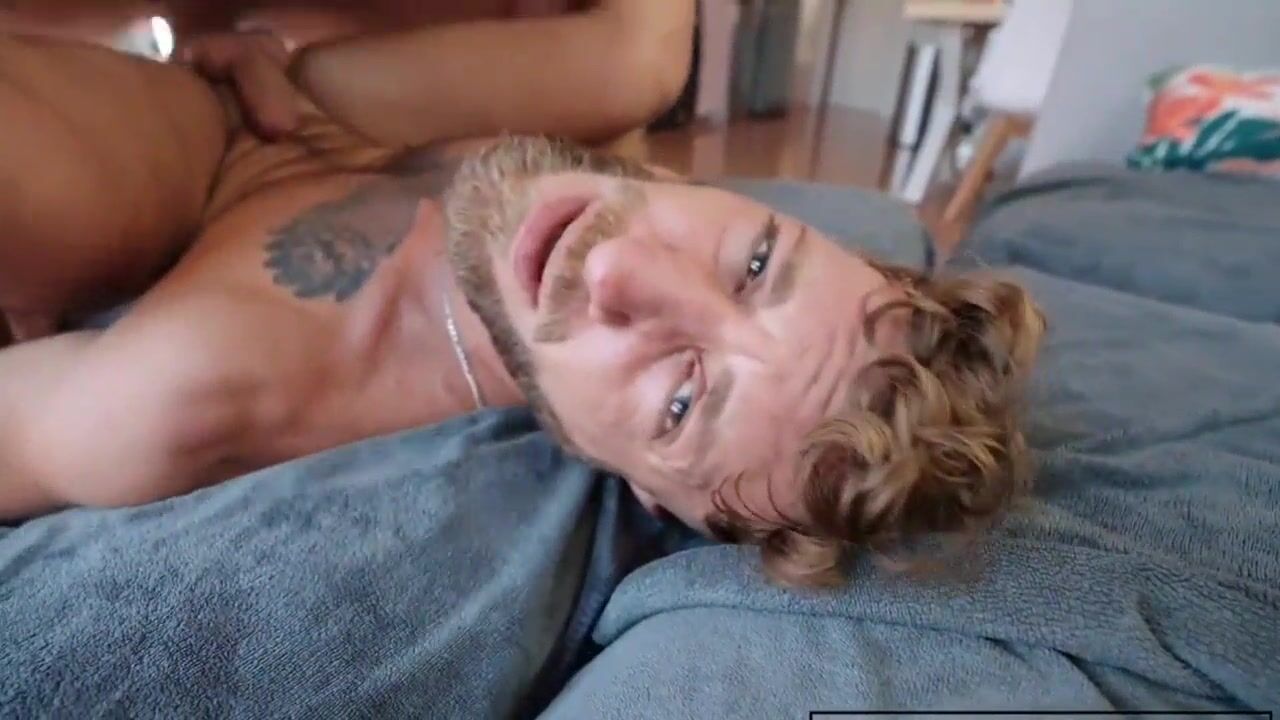 Gay stepdad wakes up twink for some bareback and creampie