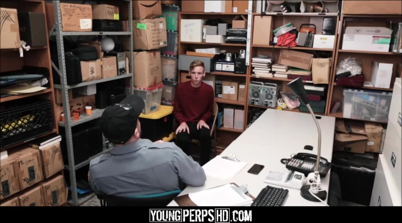 Cute young blonde twink boy is caught shoplifting and fucked by a gay horny security officer for his freedom.