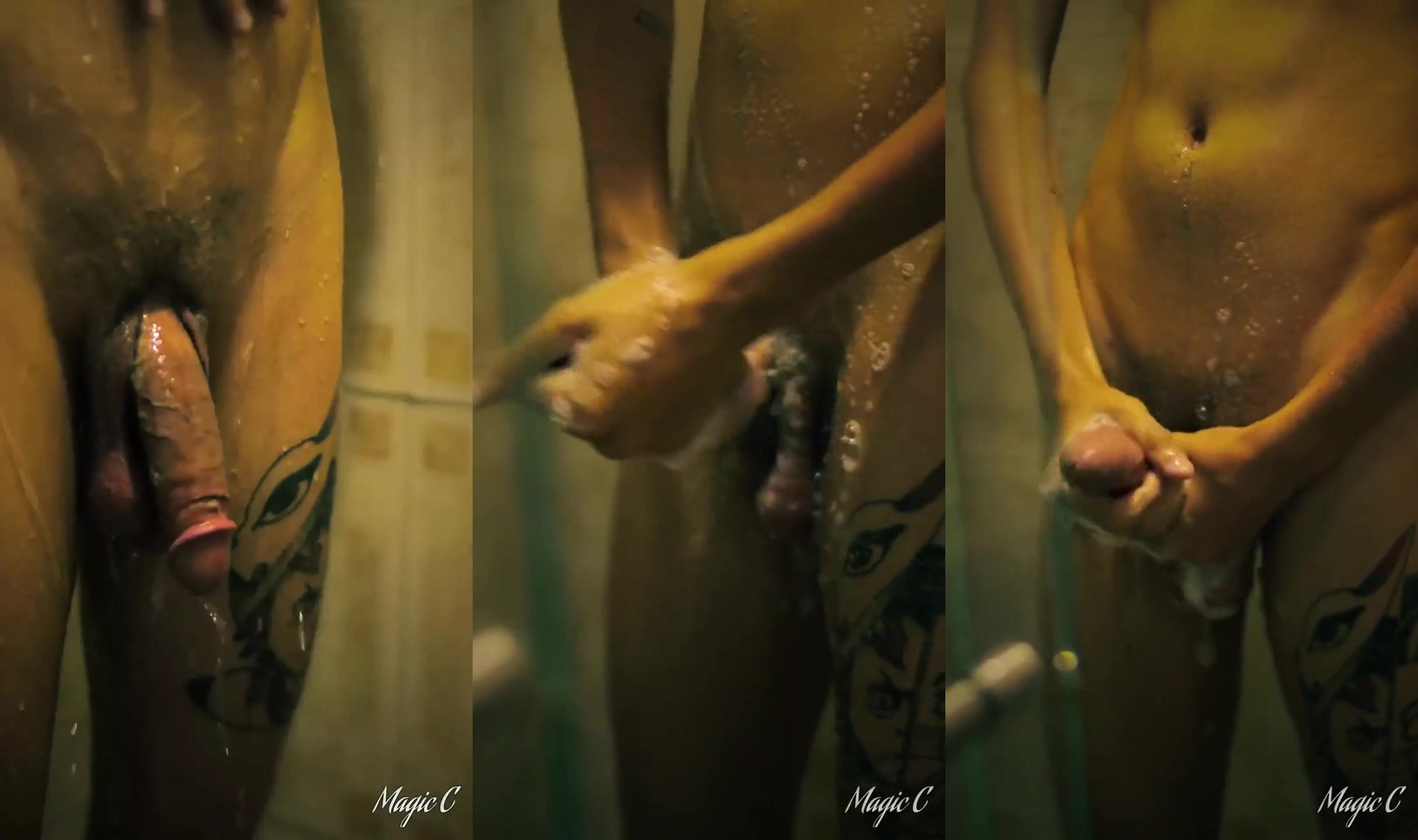 Jerking my big cock in the shower as you are peeking until I shoot a nice thick load