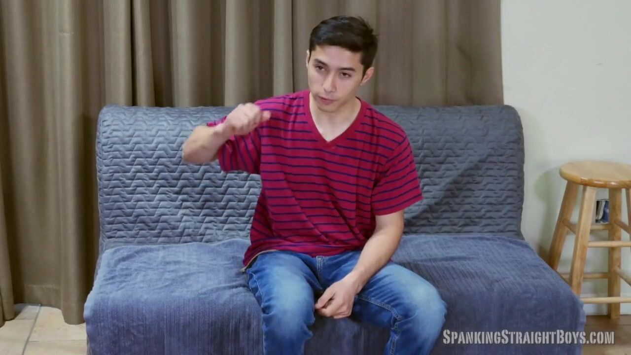 Hot young Hispanic straight boy Oscar goes over a man's knee for his first spanking video.