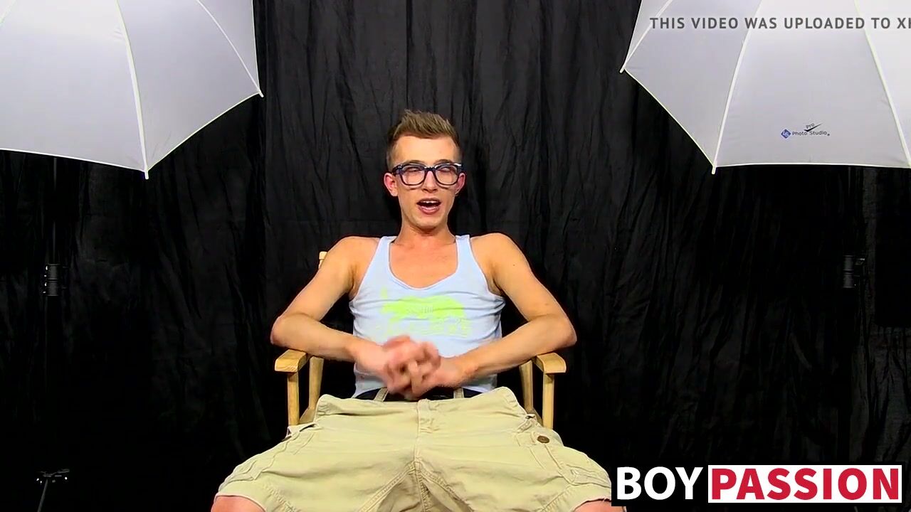 Hung twink Tanner Sharp interviewed and fucks dildo solo